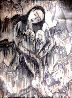 "the city looks like a single gigantic creature-or more like a single collective entity created by many intertwining organisms. Countless arteries stretch to the ends of its elusive body, circulating a continuous supply of fresh blood cells, sending out new data and collecting the old, sending out new consumables and collecting the old, sending out new contradictions and collecting the old. To the rhythm of its pulsing, all parts of the body flicker and flare up and squirm. Midnight is approaching and while the peak of activity has passed, the basal metabolism that maintains life continues undiminished, producing the basso continuo of the city's moan, a monotonous sound that neither rises nor falls but is pregnant with foreboding." Murakami